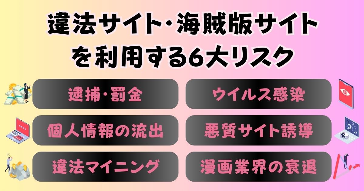 何よりも著作権法違反となる可能性が高く、法的責任を問われるリスクがあるんです!